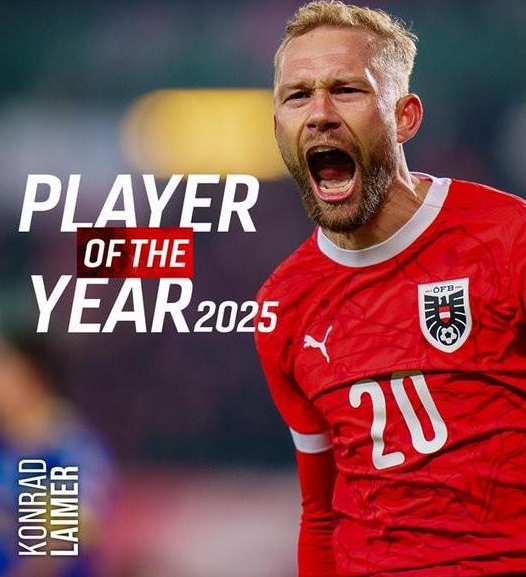 奥地利足协向莱默尔致以热烈祝贺,表彰其当选2025奥地利年度最佳球员。这位28岁的球员首次斩获该奖项,此荣誉由奥地利通讯社组织12位奥超联赛主教练投票选出,他接替了去年的得主鲍姆加特纳。他以51分的绝对优势,大幅领先第二名鲍姆加特纳(16分)、阿瑙托维奇(15分)以及吉泰什维利(10分)成功当选。