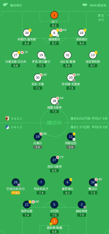 第14分钟,奥格斯堡球员赫维勒乌助攻格雷戈里奇打入一球。