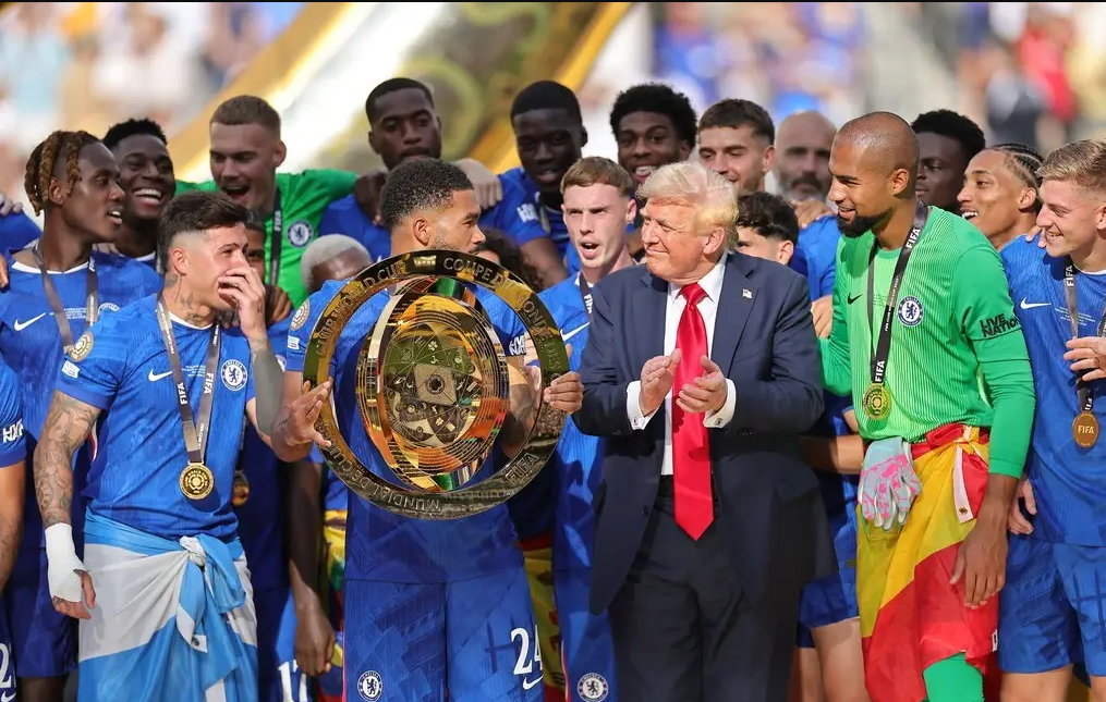 2025世俱杯决赛,切尔西3-0击败巴黎圣日耳曼夺冠,美国总统特朗普和国际足联主席因凡蒂诺为冠亚军颁奖。在颁发完奖牌和奖杯后,虽然因凡蒂诺再三邀请特朗普一起走下领奖台,但后者就是不为所动,最终他留在了领奖台上与切尔西球员一起庆祝。