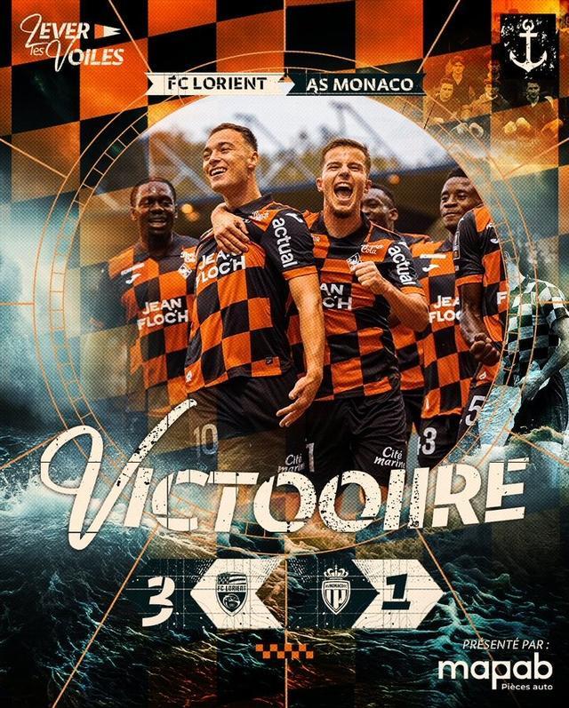 9月28日讯 法甲第6轮比赛,洛里昂主场3-1击败摩纳哥。