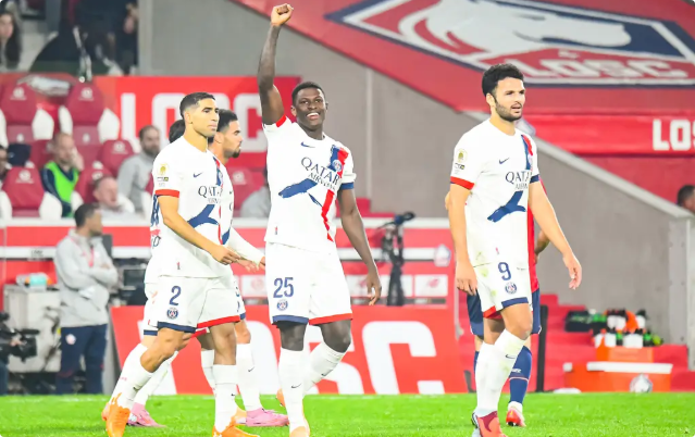 本场比赛,里尔后卫杜尔和里贝罗因伤缺阵,老将吉鲁领衔首发阵容;巴黎圣日耳曼方面,登贝莱、杜埃、内维斯、马尔基尼奥斯和卡马拉因伤缺阵,韩国国脚李刚仁坐镇中场,巴尔科拉、贡萨洛-拉莫斯和姆巴耶三剑齐发。第23分钟,李刚仁后场失误被断球,哈拉尔德松禁区左侧横传,穆尼耶点球点右侧跟上射门被防守球员挡出底线。随后,哈拉尔德松右侧角球传中,吉鲁头球攻门被巴黎圣日耳曼守门员舍瓦利耶化解。第30分钟,恩贾恩图回做,卢卡斯禁区左肋爆射被防守球员挡出底线。