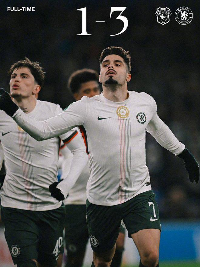 面对切尔西的攻势,卡迪夫城并未退缩。第74分钟,恩格右路传中精准找到后点,特恩布尔鱼跃头球破门扳平比分,主场球迷的欢呼声险些掀翻球场顶棚。但豪门的阵容深度终究显现威力,第82分钟,桑托斯助攻内托打出一记贴地斩,皮球直窜远角入网;补时阶段,佩德罗挑传助攻加纳乔小角度破门完成双响,彻底锁定胜局。