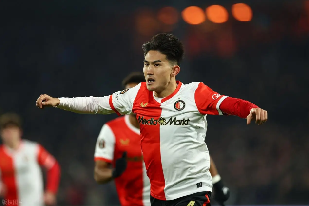 上半场第5分钟,穆萨妙传,28岁日本球星渡边刚先拔头筹帮助费耶诺德队取得领先。
