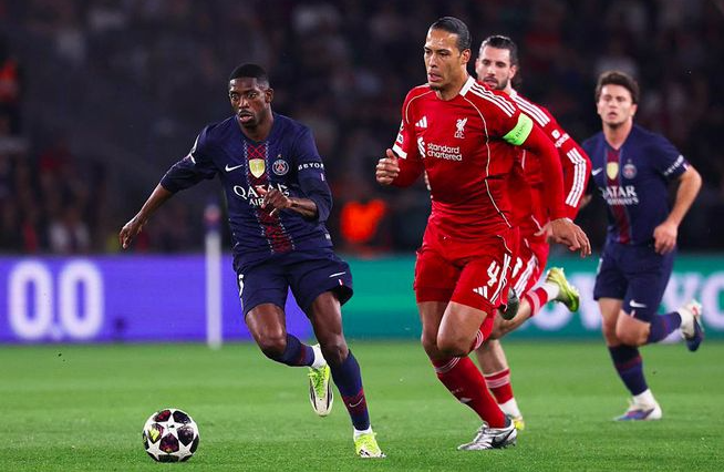 欧冠-登贝莱中框杜埃破门K77建功 巴黎2-0利物浦占先机