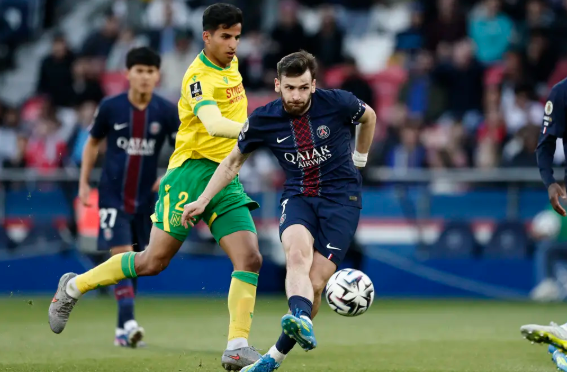 补时阶段,南特射门被扑出,比赛结束,巴黎圣日耳曼3-0南特。