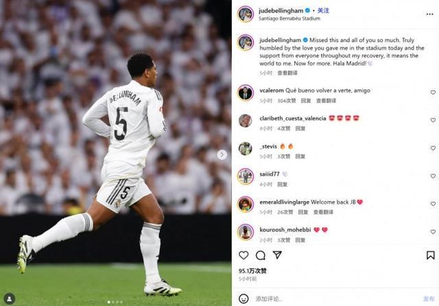 贝林厄姆复出:非常想念大家,感谢主场球迷们的支持