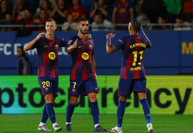 巴萨:13-霍安-加西亚/18-马丁(第83分钟,4-阿劳霍)、15-克里斯滕森、24-埃里克-加西亚、23-孔德/20-奥尔莫、21-德容(第60分钟,16-费尔明)、8-佩德里(第28-巴尔德吉)/7-费兰(第60分钟,17-卡萨多)、9-莱万、11-拉菲尼亚(第46分钟,14-拉什福德)