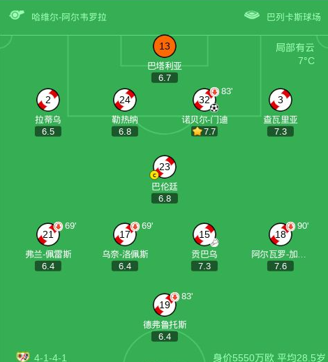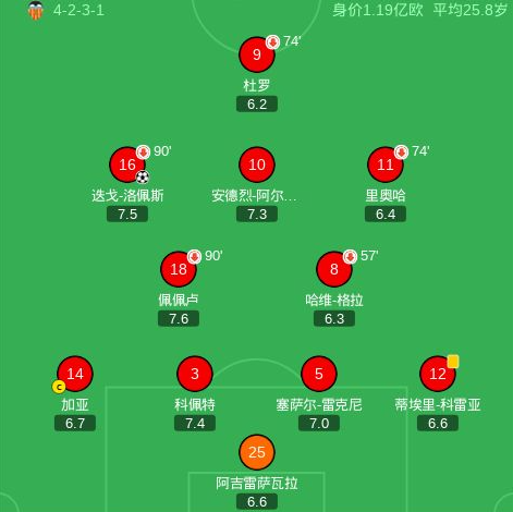 第37分钟,巴列卡诺球员贡巴乌助攻诺贝尔-门迪打入一球。
