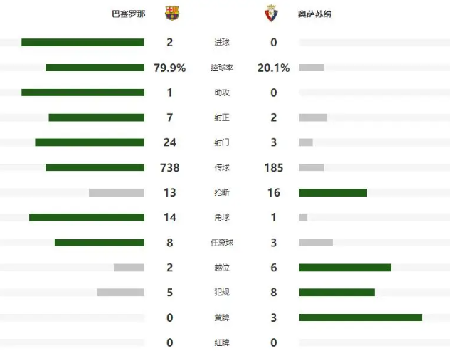 比赛正式开打后,左路的拉什福德就非常活跃,第7分钟强突到底线传中被防守球员挡出,2分钟后,再次利用个人能力,杀入奥萨苏纳禁区,在和防守球员对抗后倒地,不过主裁判没有任何表示,第15分钟亚马尔挑传禁区,费兰跟进打门没有压住,皮球直接飞出底线。