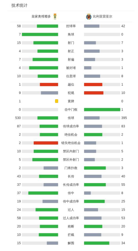 皇家奥维耶多1-1比利亚雷亚尔,尼古拉-佩佩破僵
