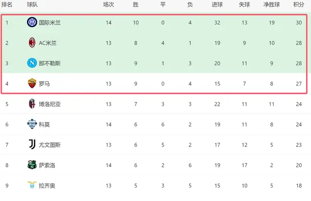 意甲榜首易主:国米大胜登顶,争冠4强差3分米兰有戏