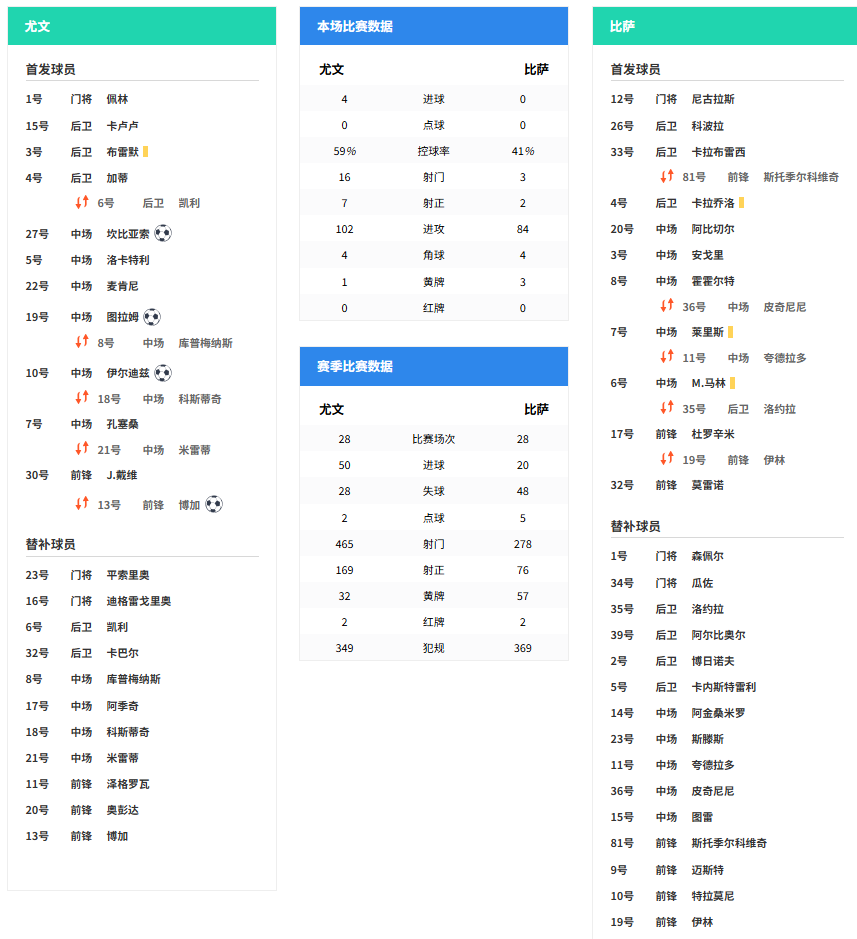 北京时间3月8日,尤文主场迎战比萨,在欧冠出局之后,尤文的状态明显回升,本轮主场作战,他们最终4-0大胜对手。尤文用一场大胜,宣告自己满血回归,接下来他们要发力争四了。