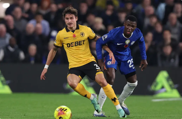第51分钟,加纳乔左路接球后连续突破,闪开角度后右脚送出一记精准的弧线传中,古斯托小禁区内跃起甩头攻门,皮球直入球门左下角,切尔西1-0领先狼队。