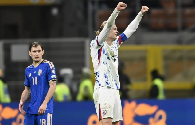 北京时间11月17日消息,2026世预赛欧洲区I组末轮,挪威客场4-1逆转意大利,完成对蓝衣军团的“双杀”,以全胜战绩拿到小组第一,时隔28年重返世界杯。此役,挪威锋霸哈兰德上演梅开二度,他也将迎来职业生涯首届大赛。