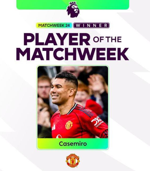 第21轮,谢什科梅开二度助球队战平伯恩利,当选周最佳;第22轮,布鲁诺-费尔南德斯在曼市德比送出关键助攻,成功当选;第23轮,多古客战阿森纳打入世界波,当选周最佳;第24轮,卡塞米罗对阵富勒姆传射建功,当选周最佳,曼联连续四轮包揽周最佳。