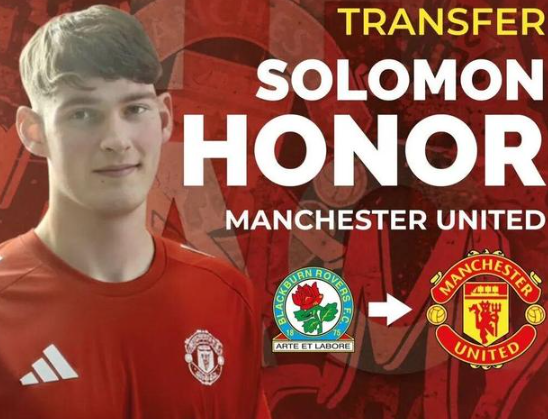 曼联本周官方确认,英冠布莱克本流浪19岁的英格兰守门员所罗门·霍纳(Solomon Honor)正式加盟球队。这名球员出自曼城青训,接受8年培训后于2021年加入布莱克本青训营,四年后现在转投红魔。