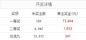 足彩25173期开奖结果:一等奖159注 单注奖金7.3万元