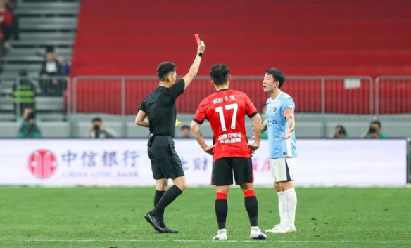 主裁王迪一开始向姜至鹏出示黄牌,但VAR介入后改判为红牌,将其直接罚下。而王迪向姜至鹏出示红牌的原因,并非认定他实施暴力行为,而认为这是一次动作野蛮的严重犯规。