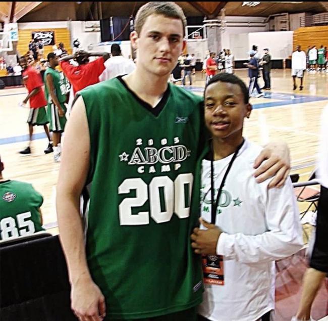 2005年,高二的勒夫场均砍下25.3分、15.4个篮板和3.7次助攻,率领所在高中夺得了州冠军。同为高二的小托马斯更是场均可以砍下31.2分,两人一同入选了当年的ABCD训练营,同为16岁的两人留下了这张合影。