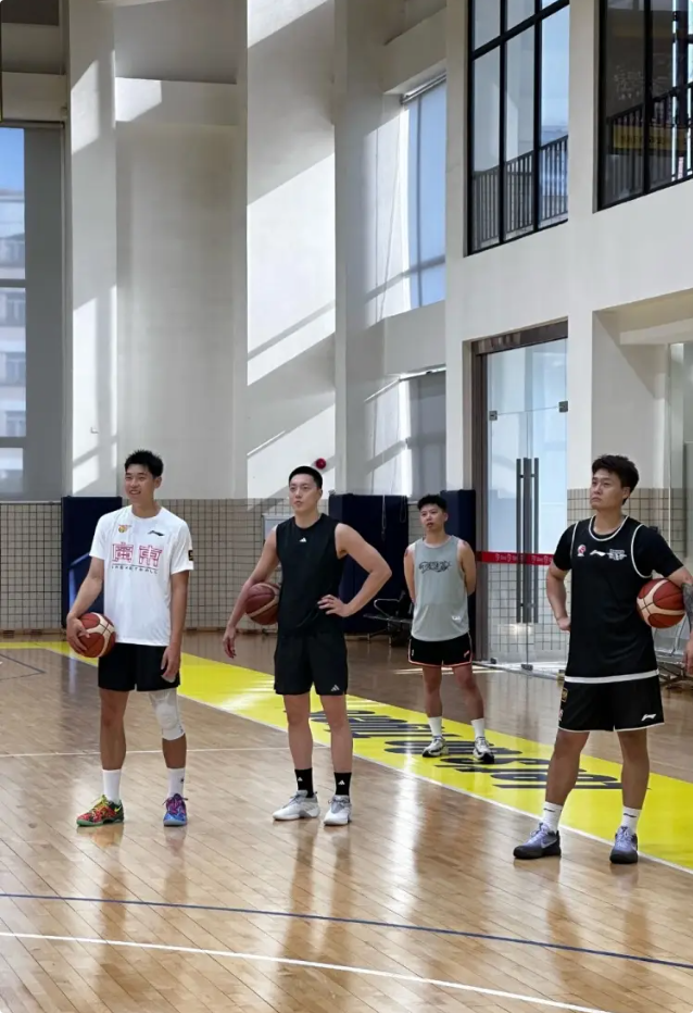 广东男篮备战全运会 赵睿穿北京队T恤和胡明轩同框