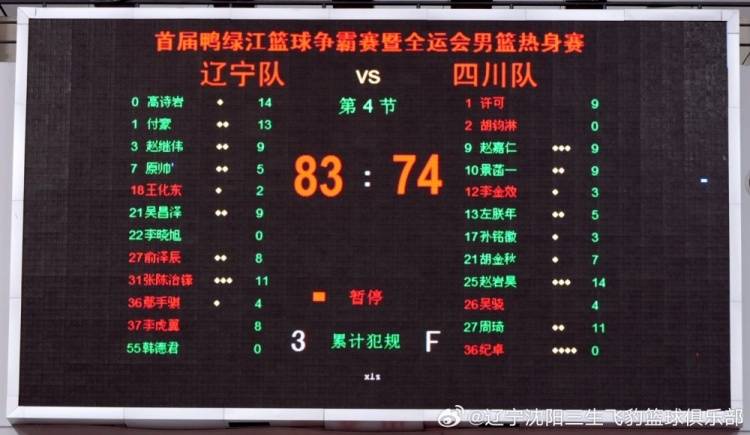 在另外一场对决中,辽宁全运男篮83-74击败四川队。