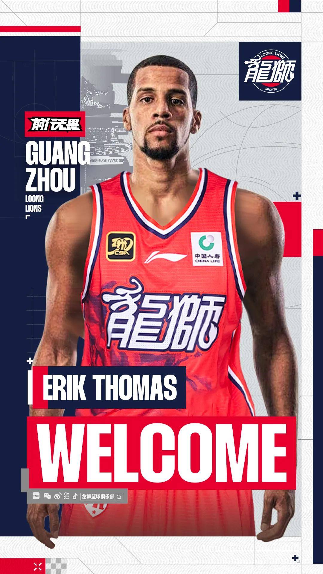 我们很高兴地宣布:俱乐部与美国籍球员Erik Thomas正式签约,待CBA公司审核、公示通过后,Erik Thomas将身披广州龙狮战袍开启自己的CBA生涯!Welcome!