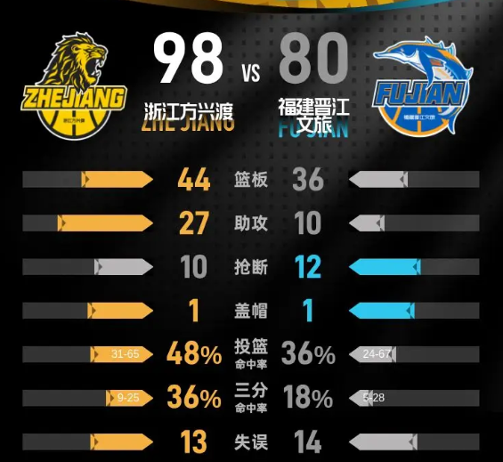 胡金秋26分孙铭徽8分12助攻 浙江广厦客场击败福建