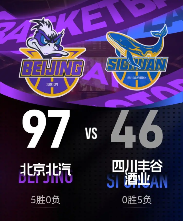 第四节,四川丰谷酒业在努力缩小分差的过程中,将比分追至42-80。尽管北京北汽随后通过一波进攻将优势扩大至51分,但四川丰谷酒业在小节后段再次发力,挽回部分分差。最终,北京北汽以97-46赢下比赛。
