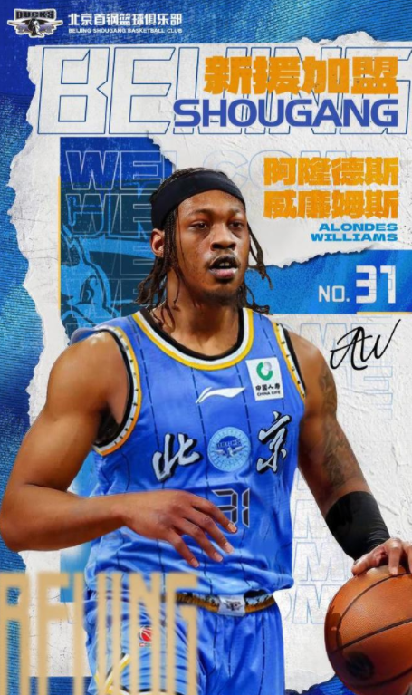 北京时间4月20日,北京首钢男篮正式官宣,球队新外援阿隆德斯-威廉姆斯完成签约,他将身披北京男篮31号战袍,代表球队出战本赛季剩余比赛。