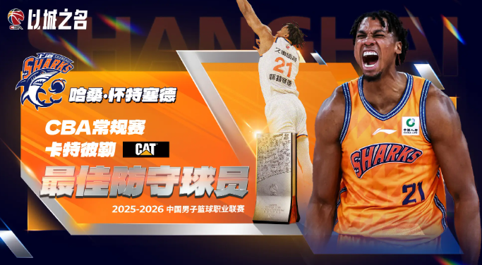 北京时间4月26日,CBA官方公布了2025-2026赛季常规赛最佳防守球员,上海久事大鲨鱼球员哈桑·怀特塞德获此殊荣。