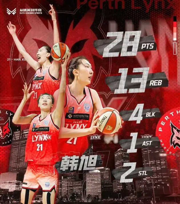 北京时间12月14日晚,中国球员韩旭在澳大利亚女篮联赛(WNBL)迎来加盟珀斯山猫队以来表现最为亮眼的一战。面对联赛领头羊汤斯维尔火力队,韩旭砍下28分、13个篮板并送出4次盖帽,攻防两端统治比赛,帮助山猫队以97比81取胜,同时终结了对手的七连胜。