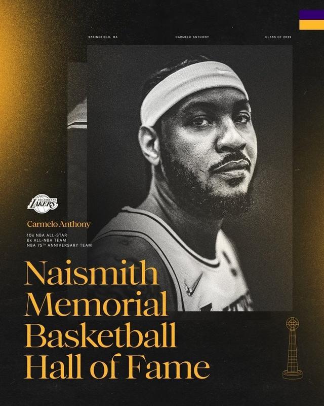 生涯最后一站!湖人官推晒图祝贺安东尼入选名人堂