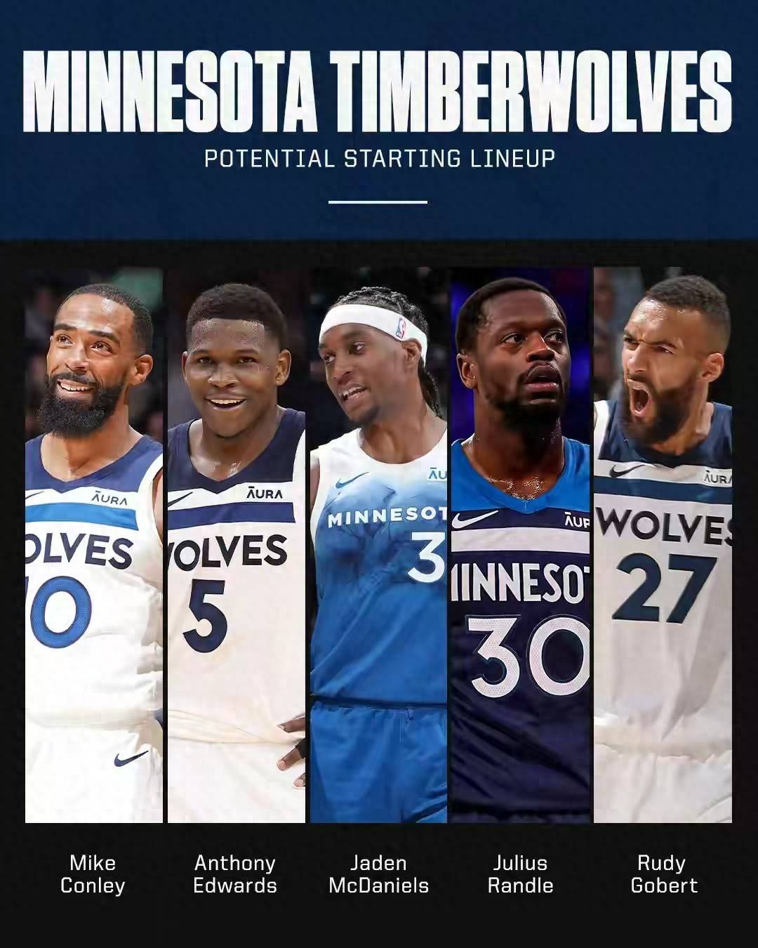 森林狼继续保持上赛季的核心阵容,但他们仅排在第五,原因何在?康利年龄逐渐增大,虽有全明星阵容加持,其他球队的实力也不容小觑。森林狼的首发包括康利、爱德华兹、麦丹、兰德尔和戈贝尔,三个全明星球员,加上一位顶级3D球员麦丹。球队的防守极为恐怖,天赋与体型方面也具备一定优势。