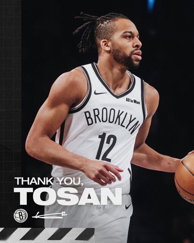 8月30日讯 布鲁克林篮网今日更新了社交媒体,官宣球队正式裁掉了前锋托桑·埃布翁万。