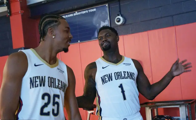 鹈鹕队首发:特雷-墨菲三世、蔡恩-威廉森、乔丹-普尔、凯文-卢尼、萨迪克-贝