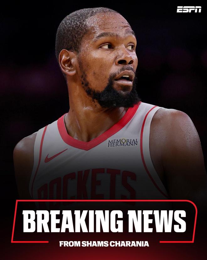Shams:杜兰特2年9000万美元续约火箭,球员自愿降薪