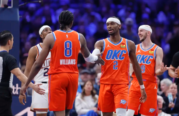 雷霆队首发:谢伊-吉尔杰斯-亚历山大、切特-霍姆格伦、卡森-华莱士、杰伦-威廉姆斯、吕冈茨-多尔特