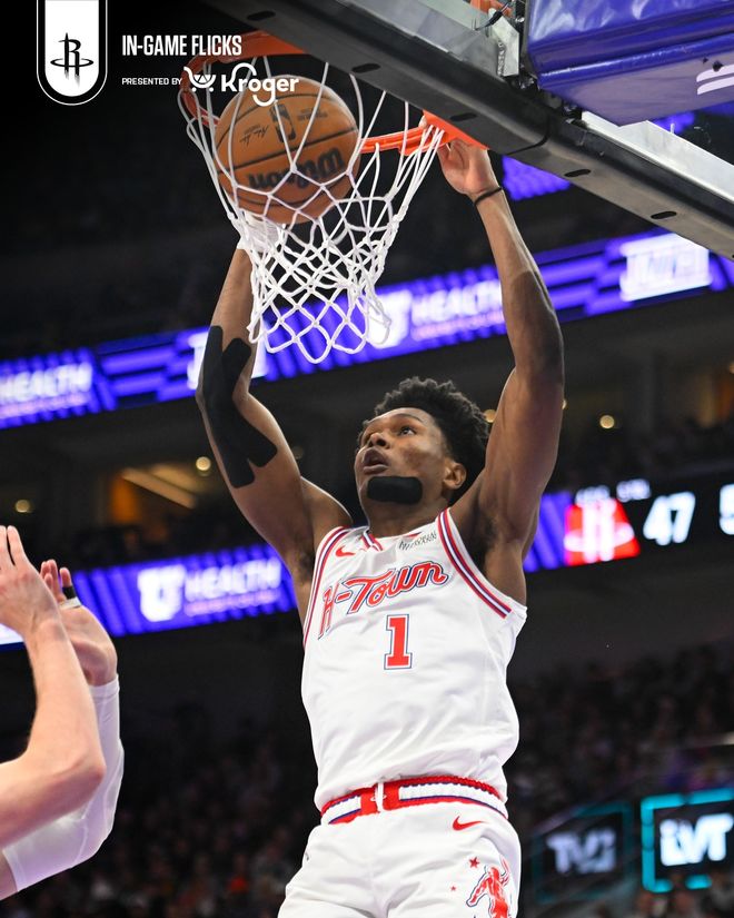 火箭队首发阵容:舍帕德、汤普森、杜兰特、史密斯、申京