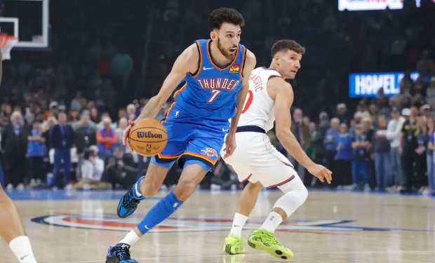 雷霆队首发:谢伊-吉尔杰斯-亚历山大、切特-霍姆格伦、杰伦-威廉姆斯、卡森-华莱士、吕冈茨-多尔特