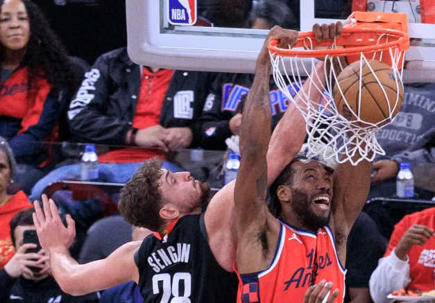 快船队首发:科怀-伦纳德、詹姆斯-哈登、约翰-科林斯、克里斯-邓恩、布鲁克-洛佩斯