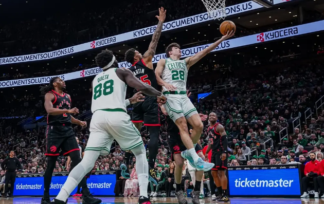 凯尔特人队:普理查德27分5篮板8助攻、布朗25分8篮板7助攻、豪瑟19分5篮板2助攻、怀特18分3篮板5助攻、西蒙斯15分2篮板5助攻、克塔10分7篮板、加尔扎6分7篮板1助攻、冈萨雷斯5分4篮板。第一节,比赛从一开场,凯尔特人迅速进入状态,利用犀利的进攻在短时间内建立起12分的领先优势。尽管猛龙在小节后段全力以赴,试图缩小分差,但到本节结束时,凯尔特人依然保持着领先。凯尔特人的豪瑟表现抢眼,独得12分,其中包括4记三分球。第一节过后,凯尔特人以37-30领先。